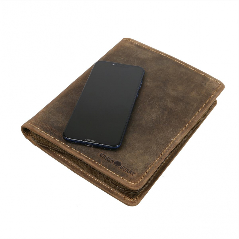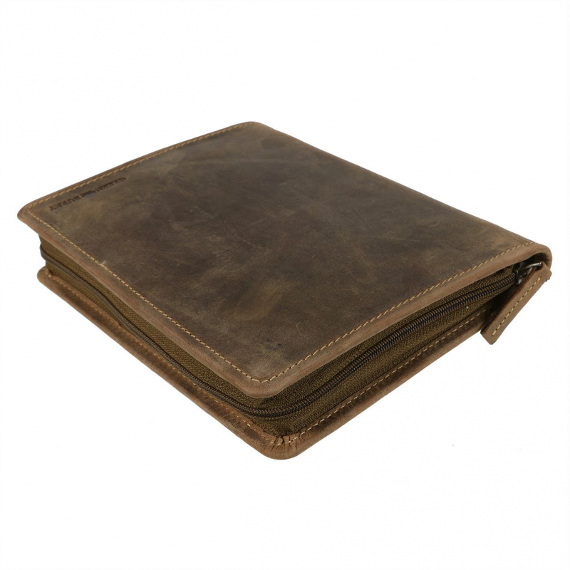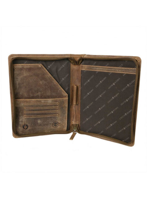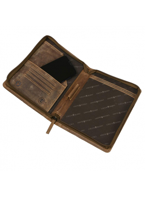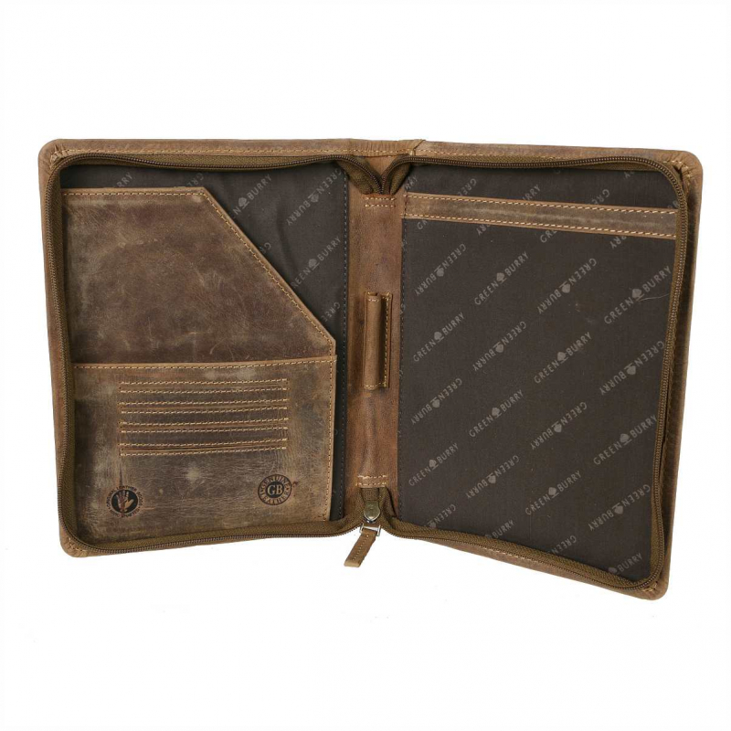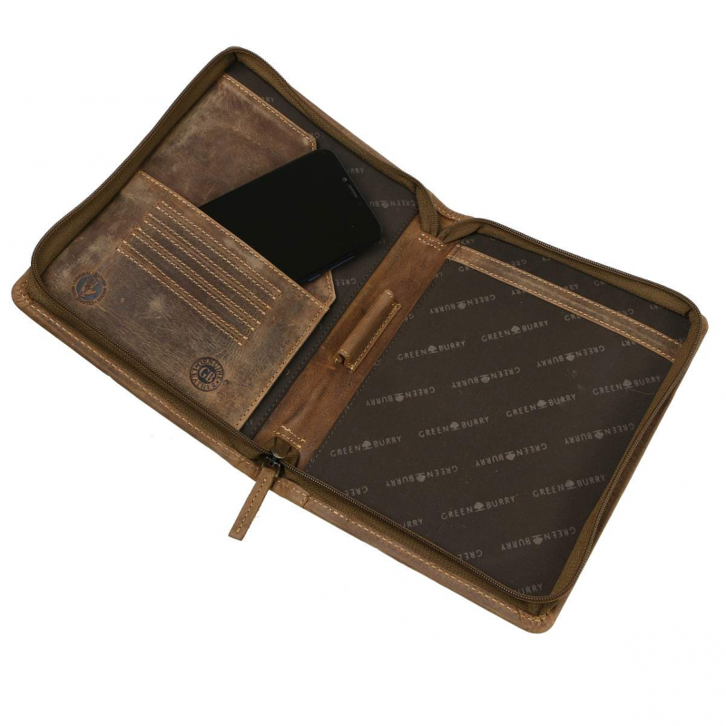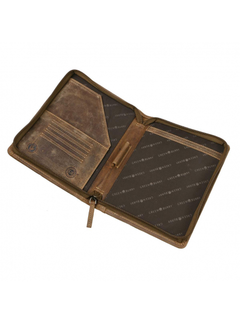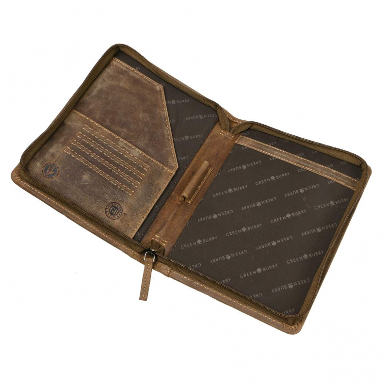Spisovka - konferenčné dosky GREENBURRY z masívnej brúsenej kože bez rúčky. Zapínanie spisovky zipsom, praktický formát na dokumenty A5.