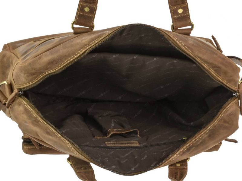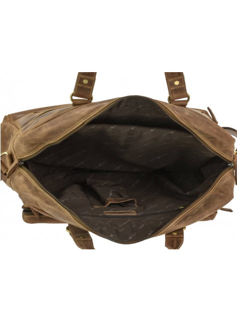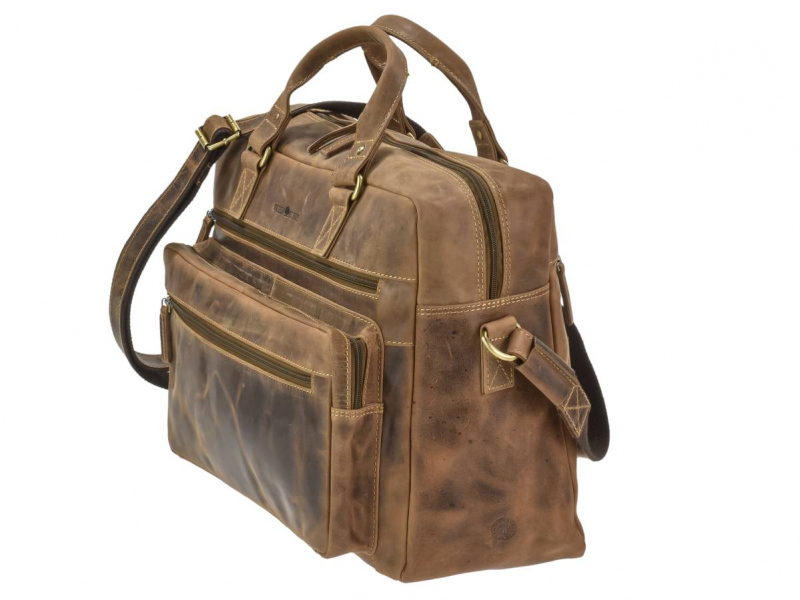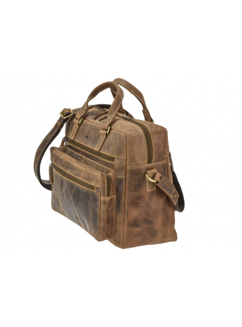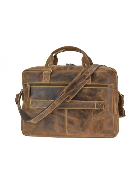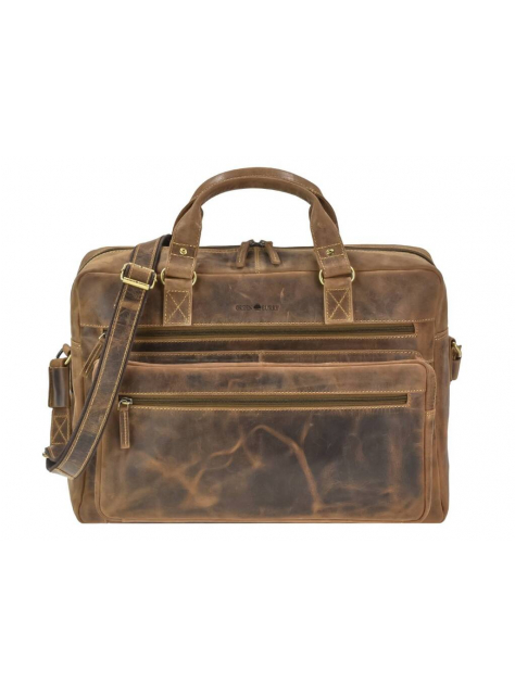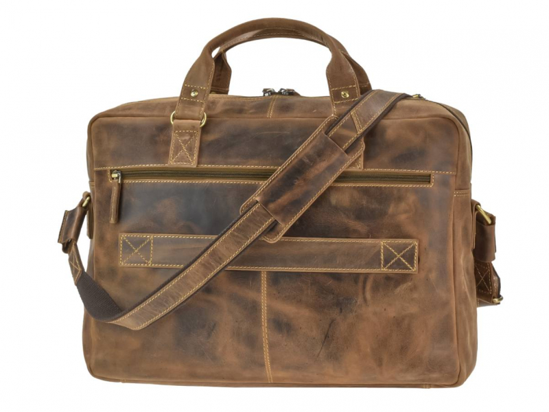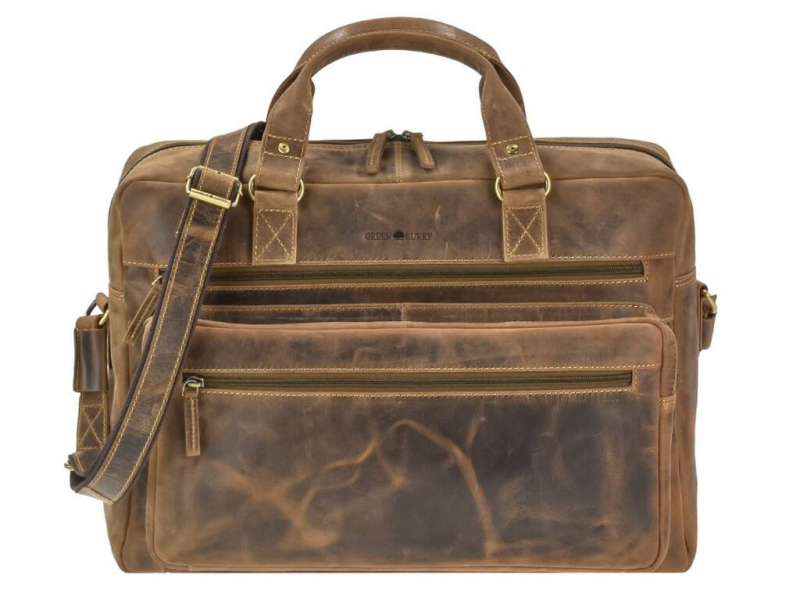 Kožená taška zn. GreenBurry z vysokokvalitnej hovädzej kože v starožitnej úprave VINTAGE Braun. Taška rozmerov 42 x 31 x 21 cm je svojim priestorom určená na nosenie dokumentov A4 a notebooku do rozmerov 36 x 26 cm. Úchop tašky je za rúčky alebo nosenie na ramene. Popruh je odnímateľný, šírky 4 cm, nastaviteľný do dĺžky 140 cm.