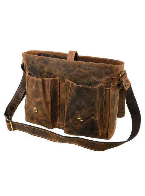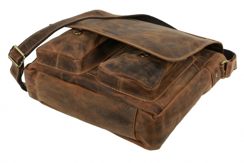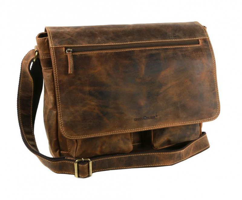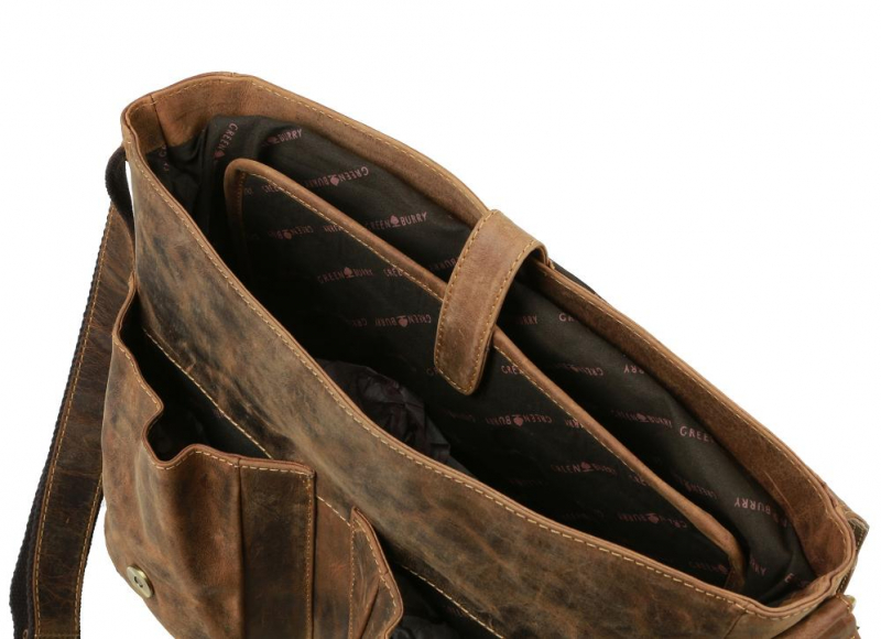 Kožená taška na notebook 13" GREENBURRY 1781, hnedá vintage