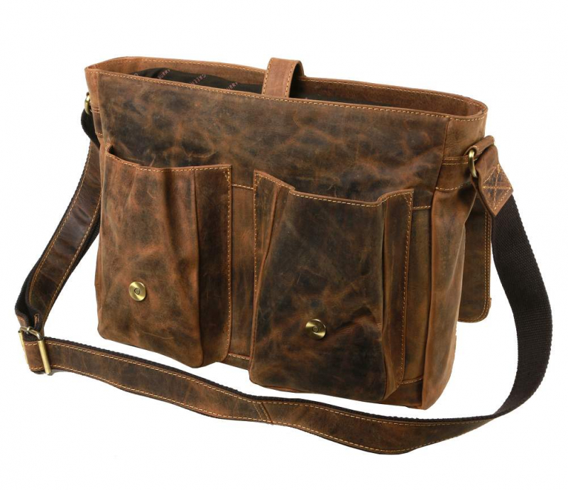 Taška na rameno alebo cez plece vo vintage štýle. Veľký formát s polstrovaným priečinkom 36x24x3 cm na malý notebook/tablet.