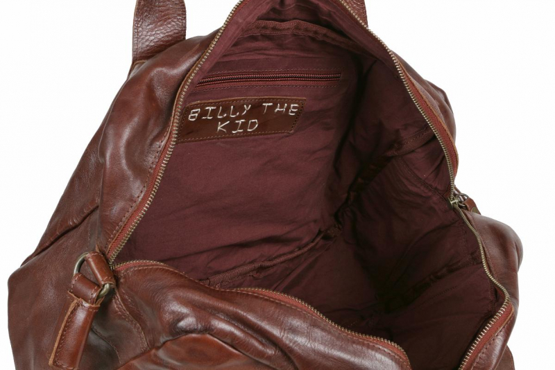 Vnútorný priestor uzatváraný na zips. Jemne polstrovaná predná a zadná stena tašky. Vyrazené logo na vonkajšej bočnej stene, prednej stene (odznak šerifskej hviezdy), súčasťou vybavenia je odnímateľná kožená menovka, odnímateľný kožený prívesok a kovová karabínka BILLY THE KID s malou pištoľou.