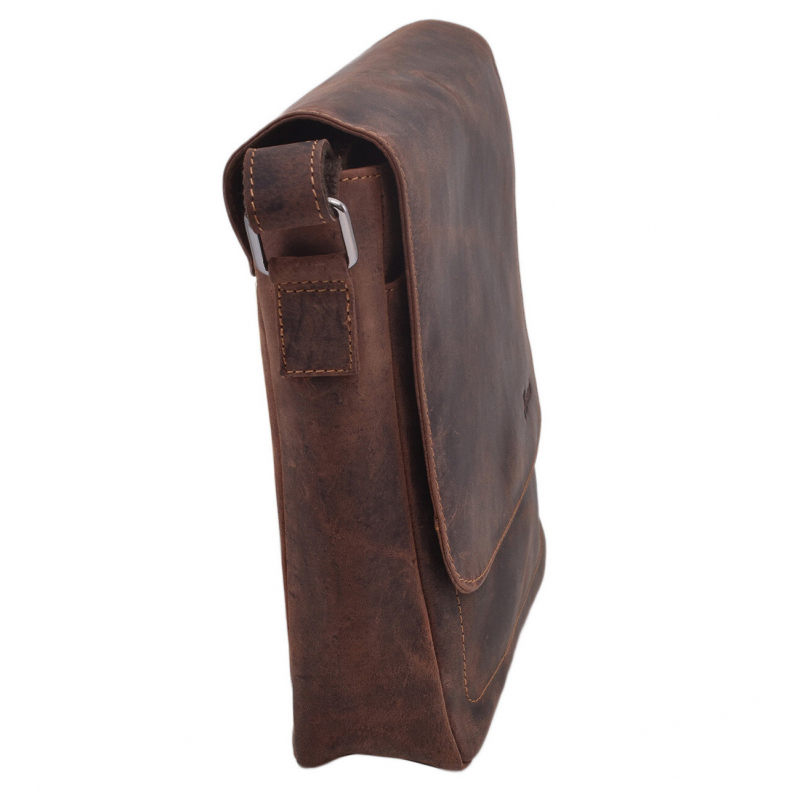 Kvalitná koža v jemne brúsenej úprave, masívna v odľahčenom prevedení, praktická a pohodlná na nosenie. Taška drží svoj tvar, hrany sú spevnené, steny tašky a poklop majú vnútornú miernu výstuž (polstrovanie).
