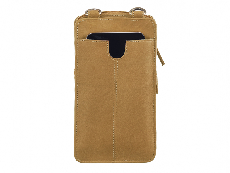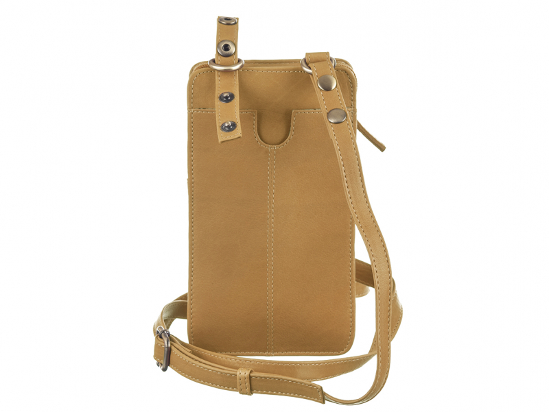 Kožený priečinok pre smartfón na zadnej stene š. 10 x v. 16,5 cm.