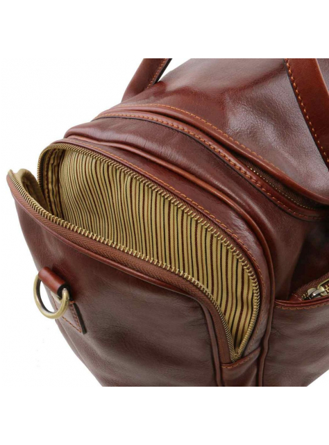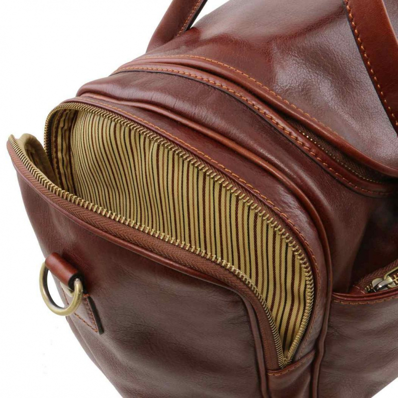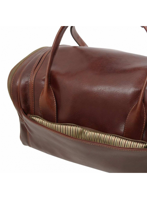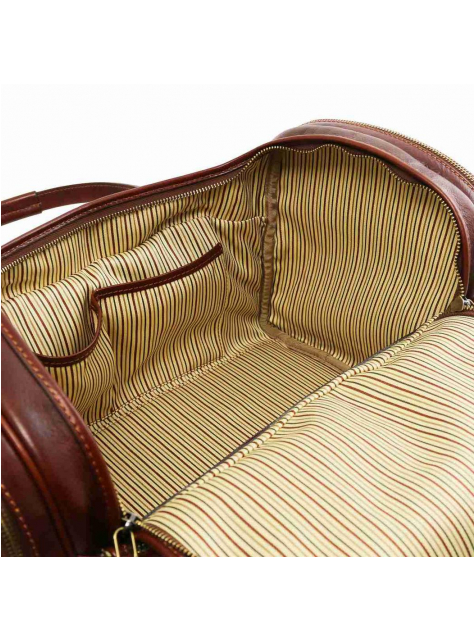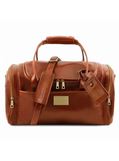 Luxusná kožená cestovná taška VOYAGER od TUSCANY LEATHER - menšía víkendová veľkosť v koňakovo-hnedej farbe kože.