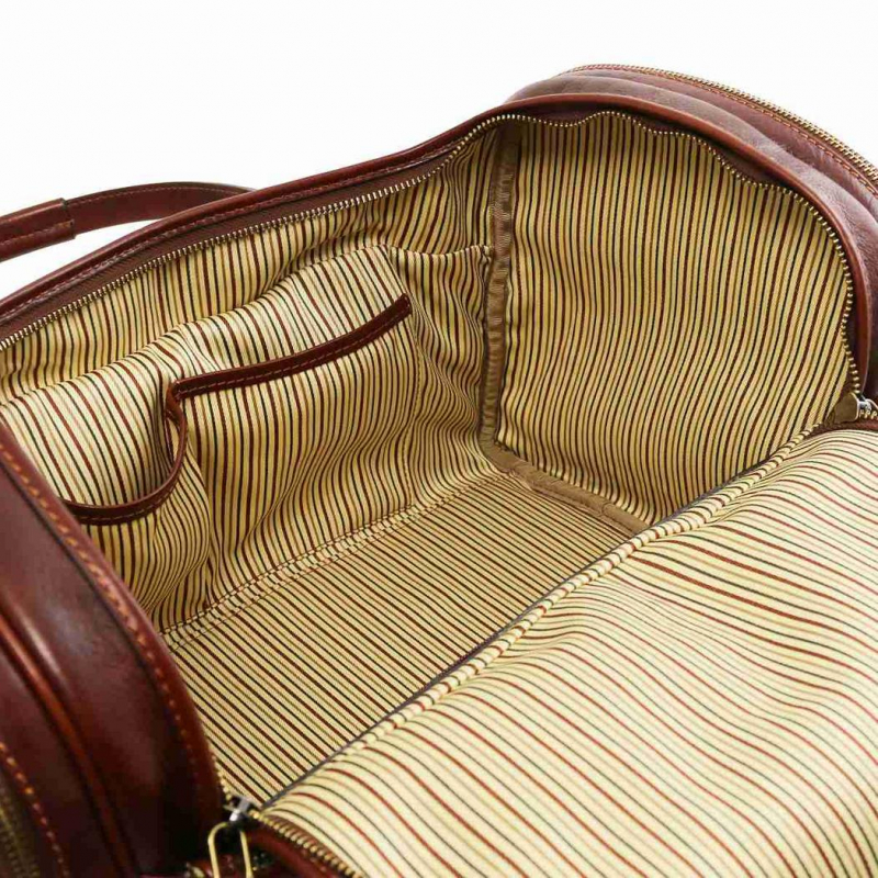 K lepšej manipulácii s cestovnou taškou slúžia kožené rúčky a odnímateľný popruh s možnosťou nastavenia dĺžky. Rúčky je možné zopnúť spolu.