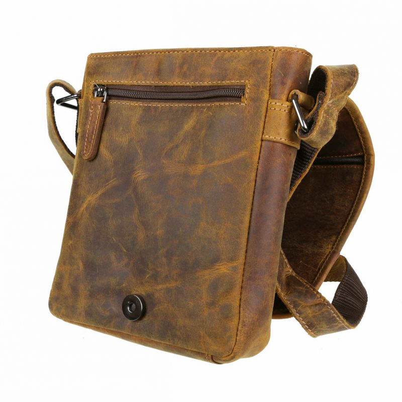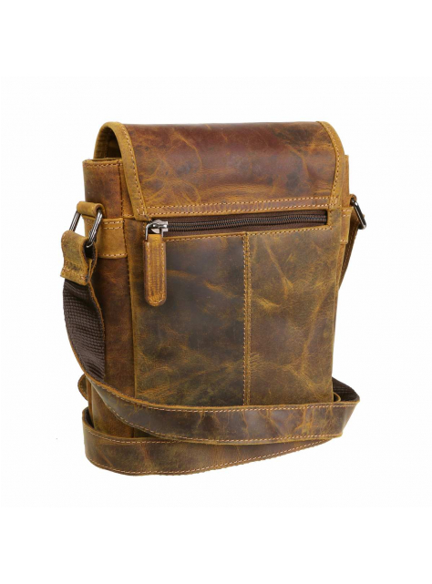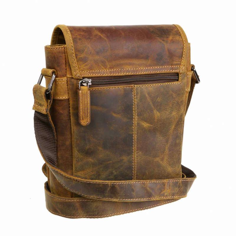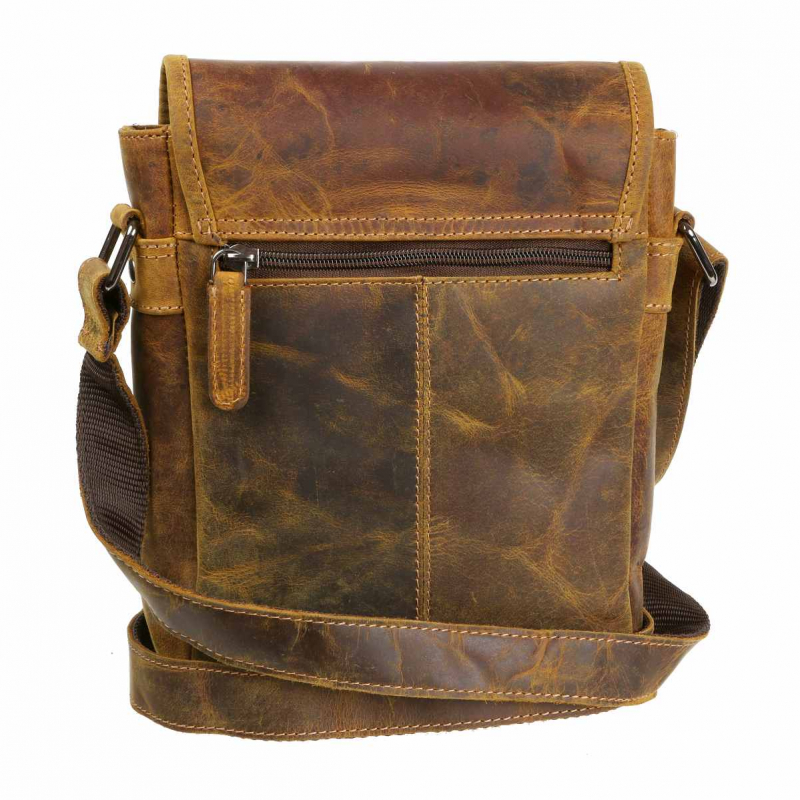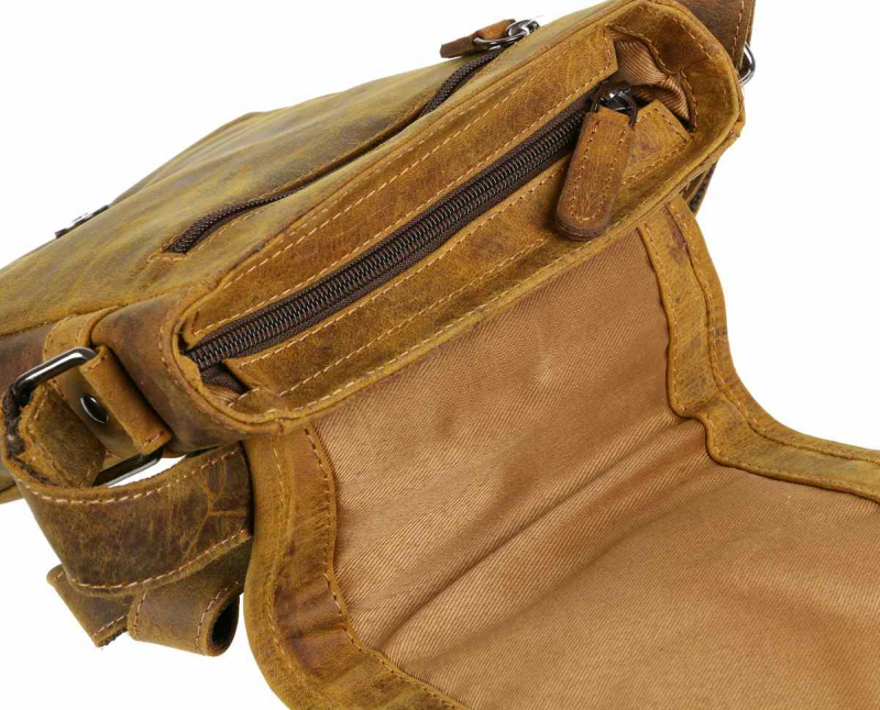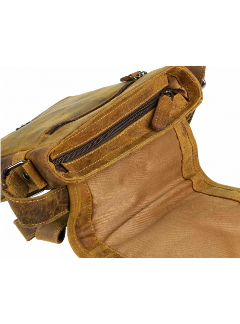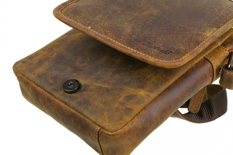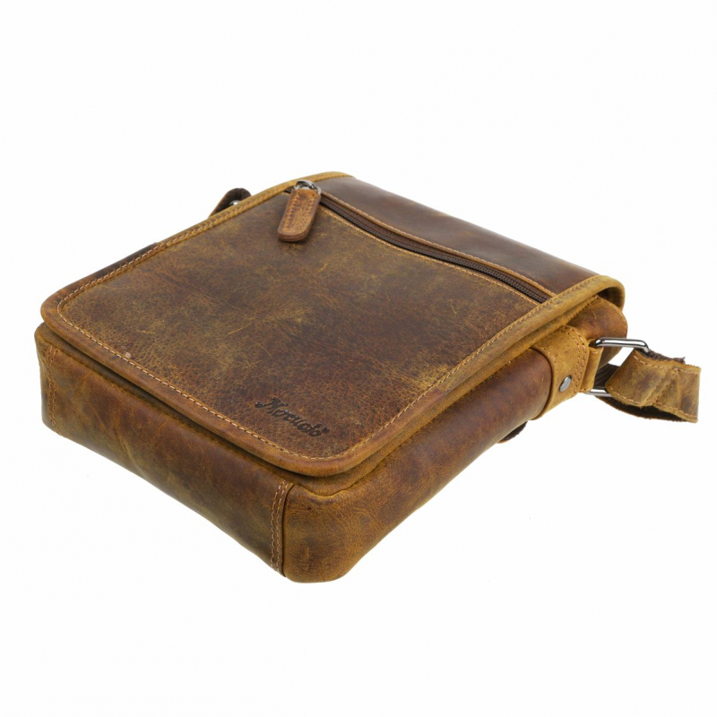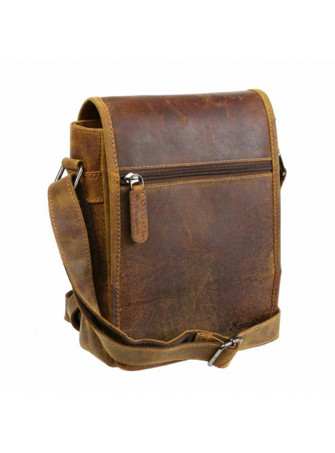 Kvalitná koža v jemne brúsenej úprave, masívna v odľahčenom prevedení, praktická a pohodlná na nosenie. Taška drží svoj tvar, hrany sú spevnené, steny tašky a poklop majú vnútornú miernu výstuž (polstrovanie). Vnútro hlavnej komory s veľkým vreckom na smartfón.