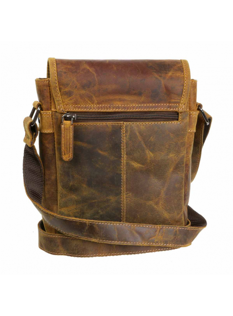 Štýlová kožená taška s poklopom na rameno / cez plece z kože v starožitnej mramorovanej úprave - odtieň camel hnedo-žltý. Praktický príručný formát pre základné osobné veci. Unisex model pre športový a športovo-elegantný štýl.