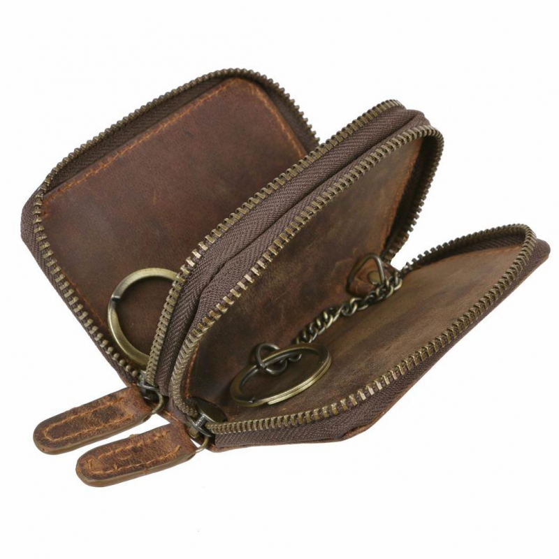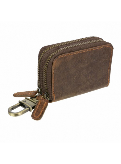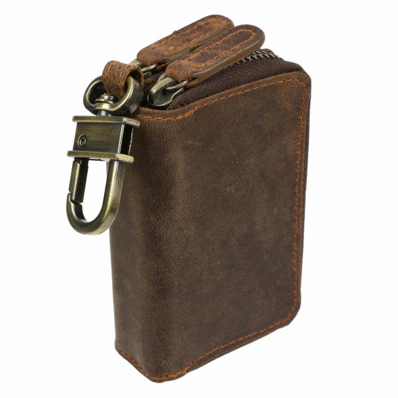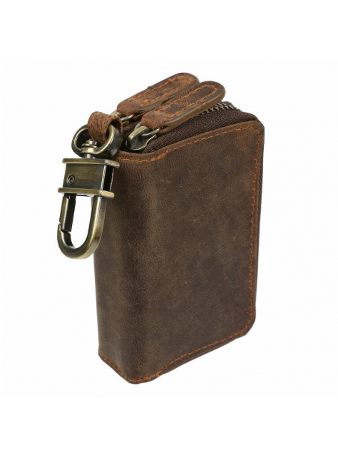 Univerzálne kožené púzdro v hnedej farbe na rozličné drobnosti (kľúče, karty...). Vonkajšia kovová karabínka na koženom pútku. Dve celokožené komory - vnútri každej sa nachádza kovová retiazka s krúžkom na kľúče.