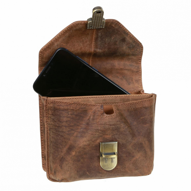 Kožené puzdro na opasok so zapínaním na kovovú pracku MERCUCIO - vyrobené z hladko brúsenej kože s mramorovanou úpravou povrchu.Taštička vhodná pre menšie predmety - kľúče, mobil (max. výška mobilu 16,5 cm), peňaženka a pod. Kožené pútko na zadnej strane vyhovuje pre opasok šírky do 5,5 -6 cm.