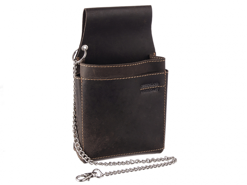 Kožené puzdro - držiak na čašnícku peňaženku zn. GREENLAND WestCoast je určené na nosenie čašníckej peňaženky na opasku. Kovová retiazka zabezpečuje pripevnenie peňaženky k puzdru.