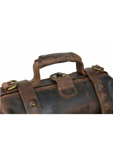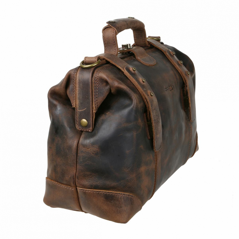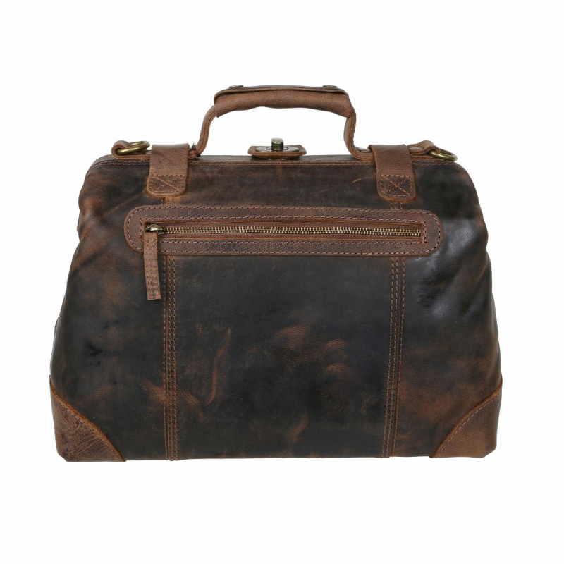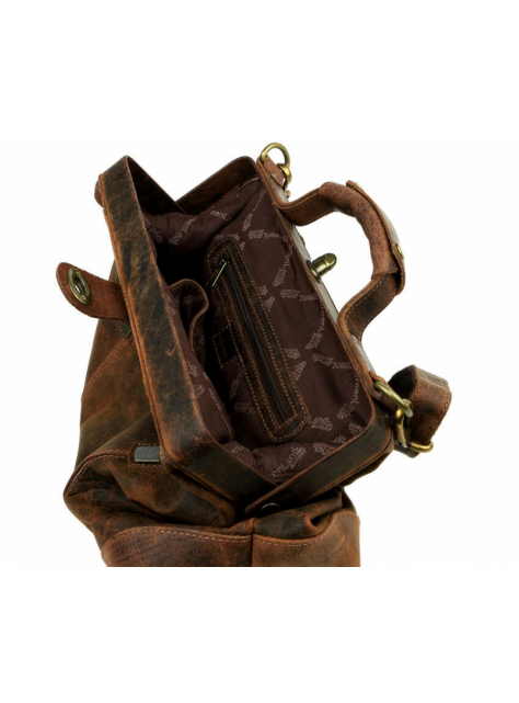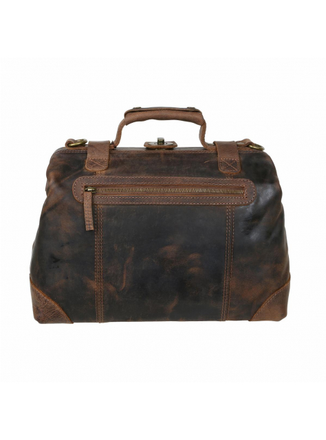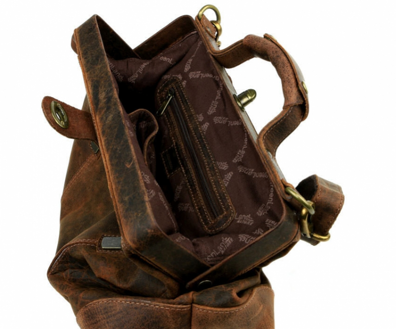 Taška - kufrík z kolekcie GreenLand NATURE z robustnej a zmäkčenej hovädzej kože prémiovej kvality so starožitným vzhľadom. Odľahčené prevednie pre pohodlné nosenie. Úchop za koženú rúčku alebo nosenie na ramene (ramený popruh odnímateľný na kovových karabínkach). Hlavný priestor jednokomorový, vhodný pre dokumenty A4. Zatváranie na otočný kovový zámok a 2 kovové pracky.