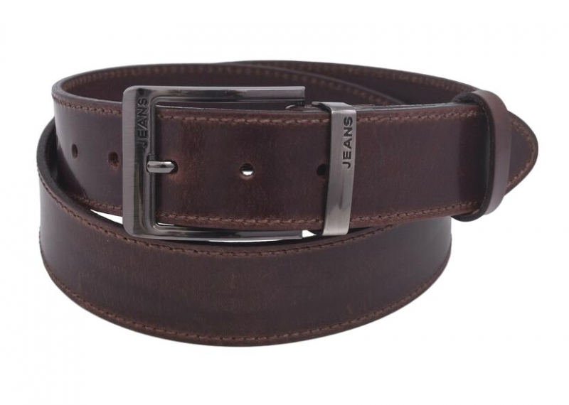 Kožený opasok zn. MERCUCIO - tmavohnedý štepovaný remeň v hladkej mierne leštenej úprave. Kovová pracka a kovové putko JEANS dodávajú opasku zaujímavý štýl.
