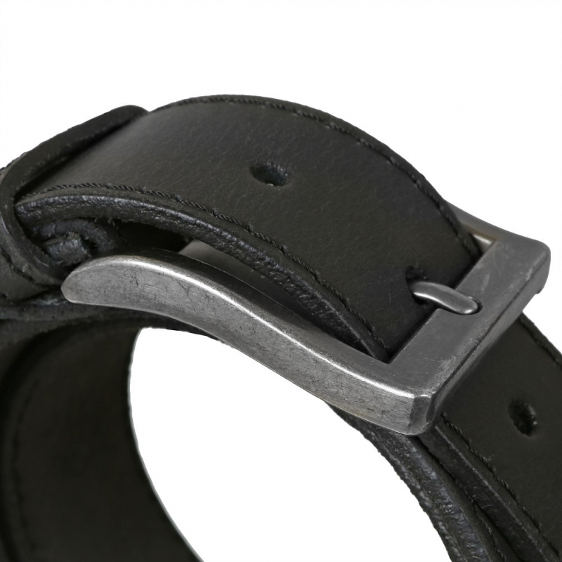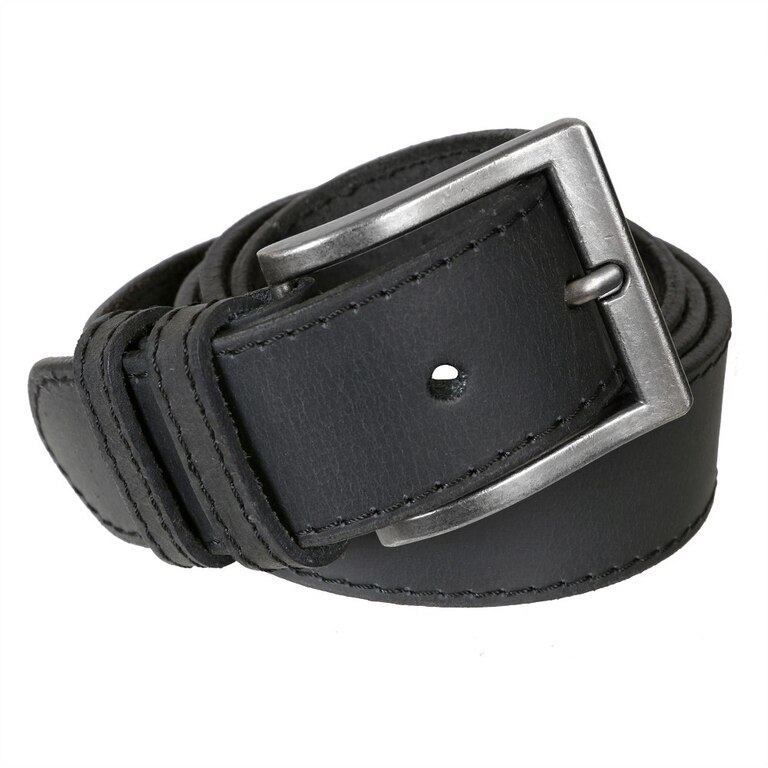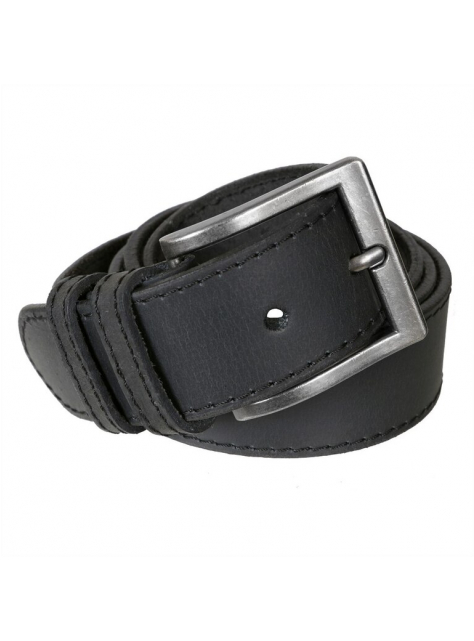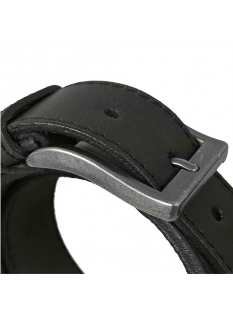 Čierny prešívaný pánsky opasok MERCUCIO s remeňom z jemne brúsnej kože. Pracka s patinou ošúchaného vzhľadu, masívnejší dizajn a nadčasový štýl.