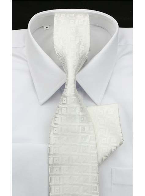 Pánska kravatová súprava - viazanka a vreckovka do saka s tkaným vzorom. Vzor kocka - vhodný pre nosenie bežné aj spoločenské.