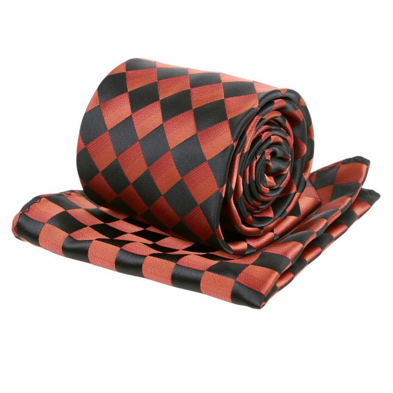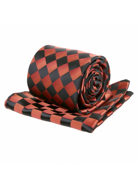 Elegantný čierno-oranžový kravatový set ORSI 2-dielny - moderný zoštíhlený strih, spodná šírka 8 cm. Set z kvalitného mikropolyesteru so zamatovým zmatneným odleskom, typickým pre hodváb. Kravatu je možné kombinovať k jednofarebným aj vzorovaným košeliam.