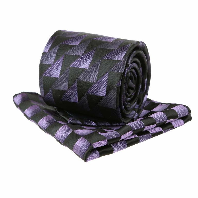 Kravatový set ORSI 8 cm fialovo-čierne trojuholníky