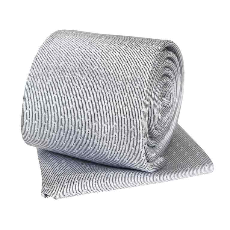 Elegantná súprava kravaty a vreckovky ORSI v šedo-striebornej farbe s kovovým odleskom.