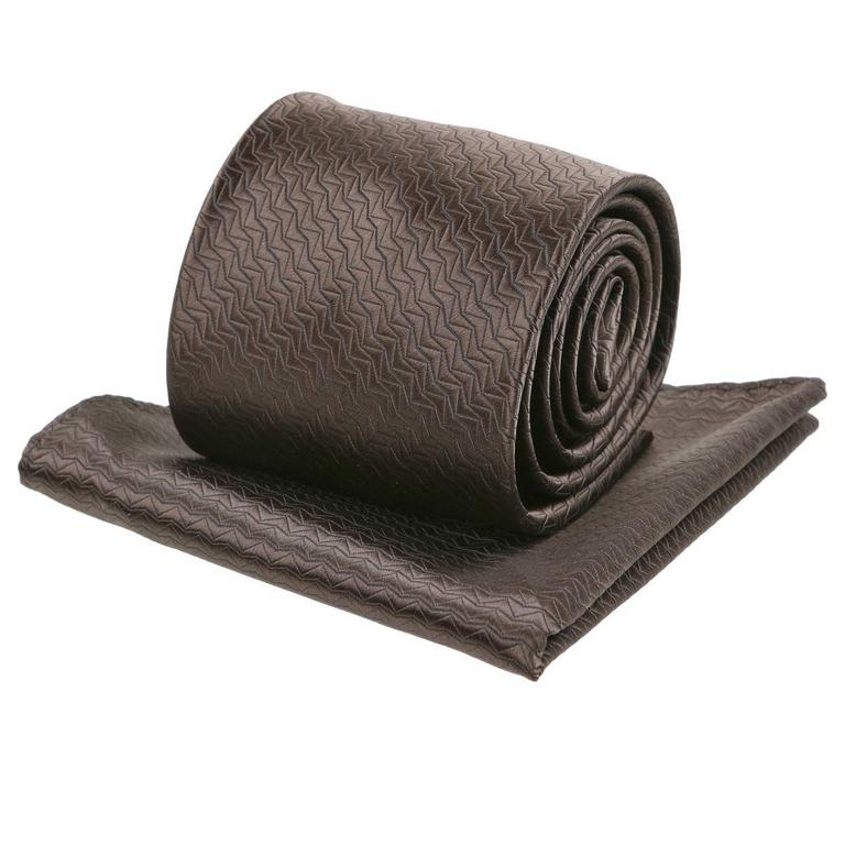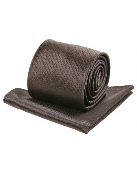 Kravatový set s tkaným vzorom ORSI hnedý tmavý 8 cm