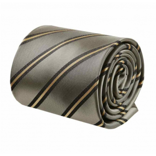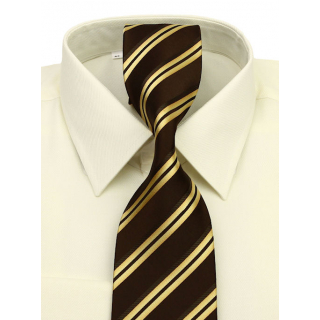 Kravata ORSI hnedá so žlto-zlatistými prúžkami 7 cm