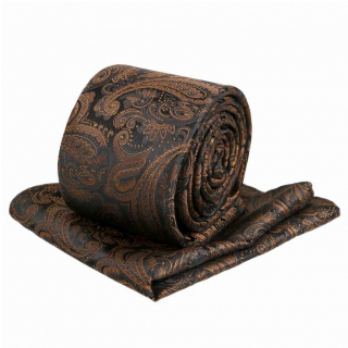 Kravatový set ORSI 2-dielny, hnedý s ružovým paisleiy vzorom