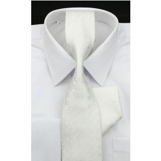 Kravatový set ORSI 2-dielny, perleťový biely s mriežkovu