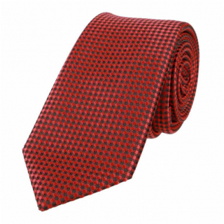 Červená SLIM kravata s drobnými štvorčekmi 6 cm