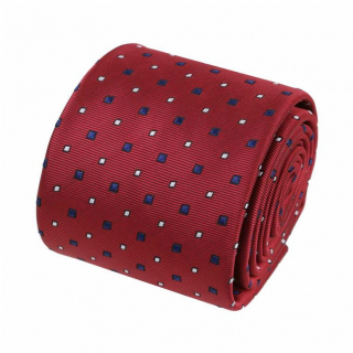 Pánska kravata ORSI červená s bielym a modrým vzorom 7 cm