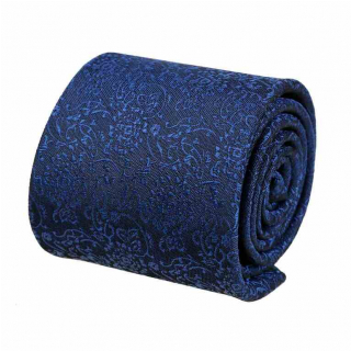 Kravata modrá kráľovská s kvetmi 7 cm ORSI 100% mikrovlákno