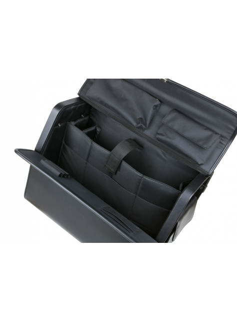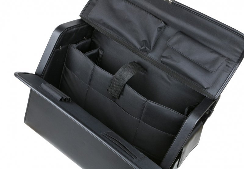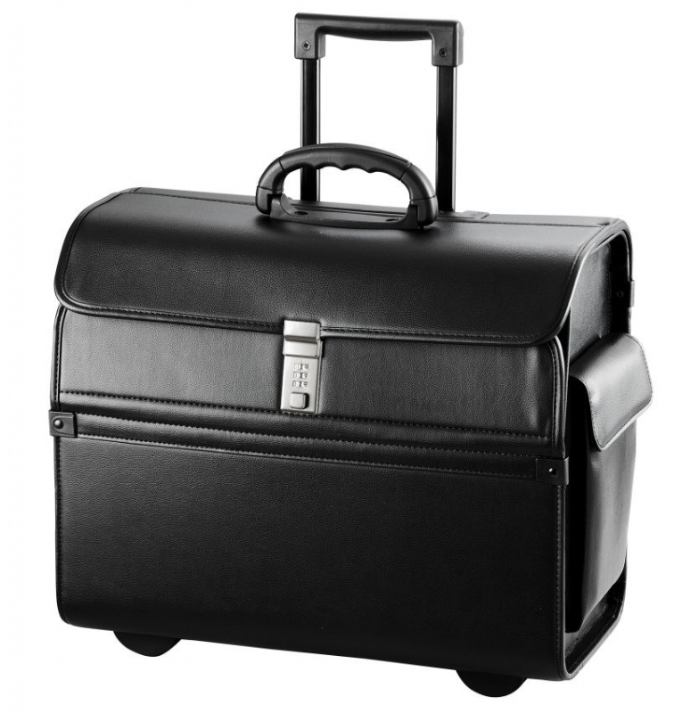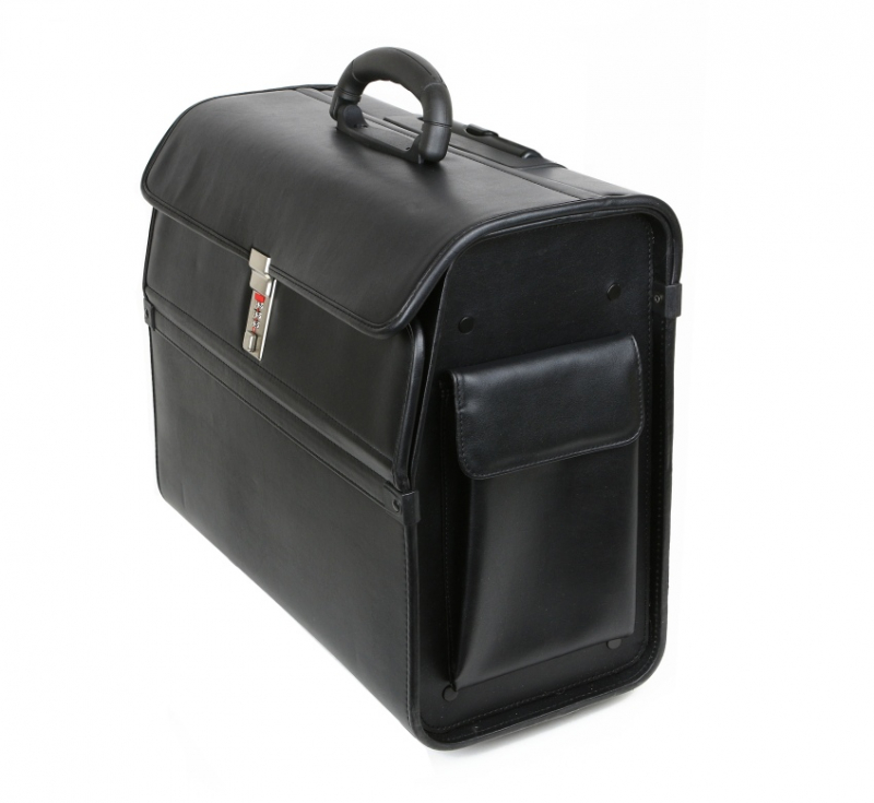 Pilotný kufor s výsuvným teleskopickým držiakom a kolieskami. Vnútri vystužený priečinok na 17" laptop. Kufor je praktický pre krátke cesty, prípadne na nosenie väčšieho objemu dokumentov, vzoriek tovaru pre obchodných cestujúcich. Vhodný ako príručná batožina na palubu lietadla.