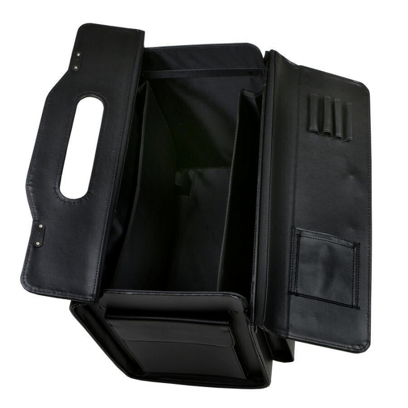 Vnútorný priestor kufríka má - 1 veľká komora, 2 užšie priehradky na dokumenty (42 x 25 x 7 cm), 2 malé puzdrá, 4x držiak na perá.