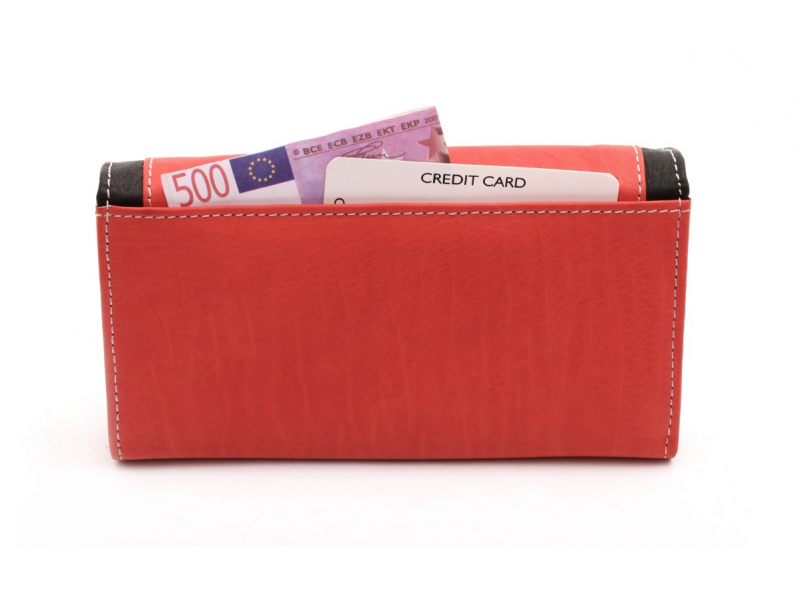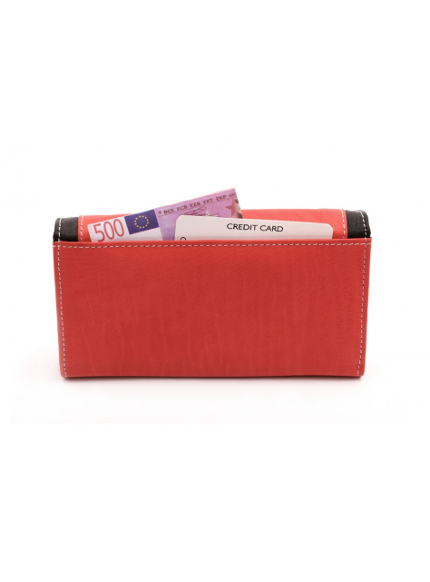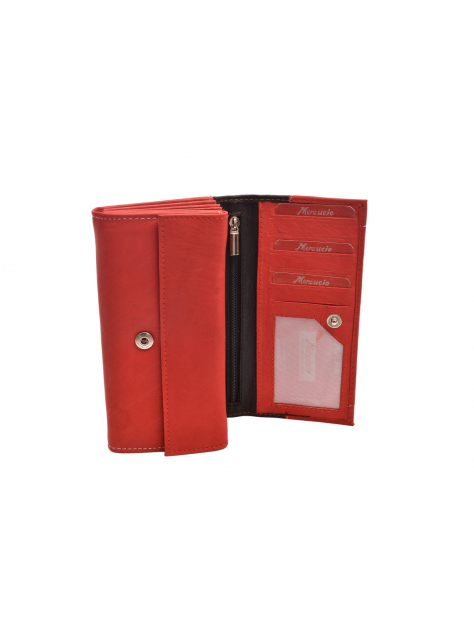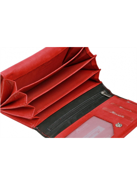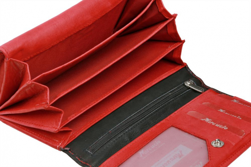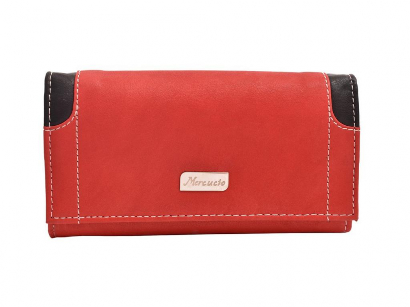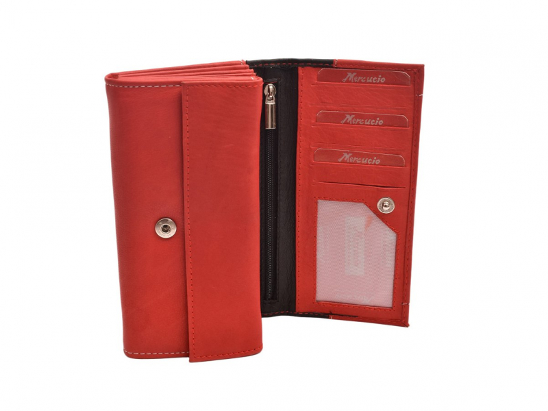 Elegantná dámska peňaženka z mäkkej kože MERCUCIO. Peňaženka listového formátu v červenej farbe. Zapínanie peňaženky aj mincovníka na kovový patent.