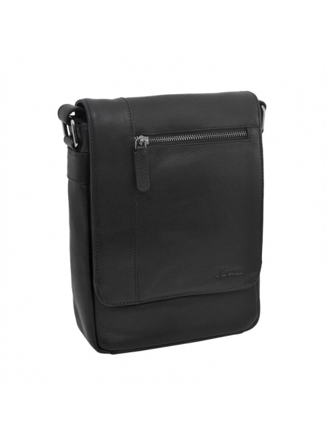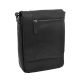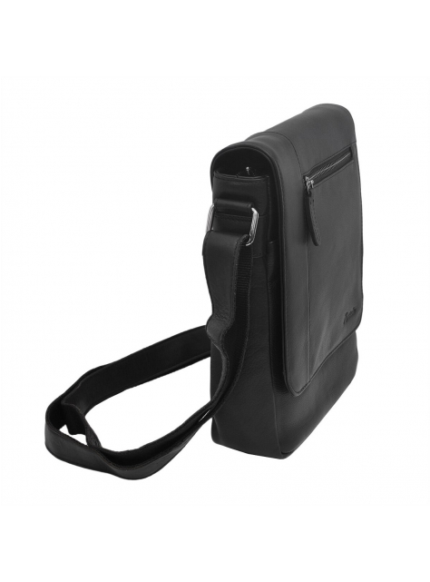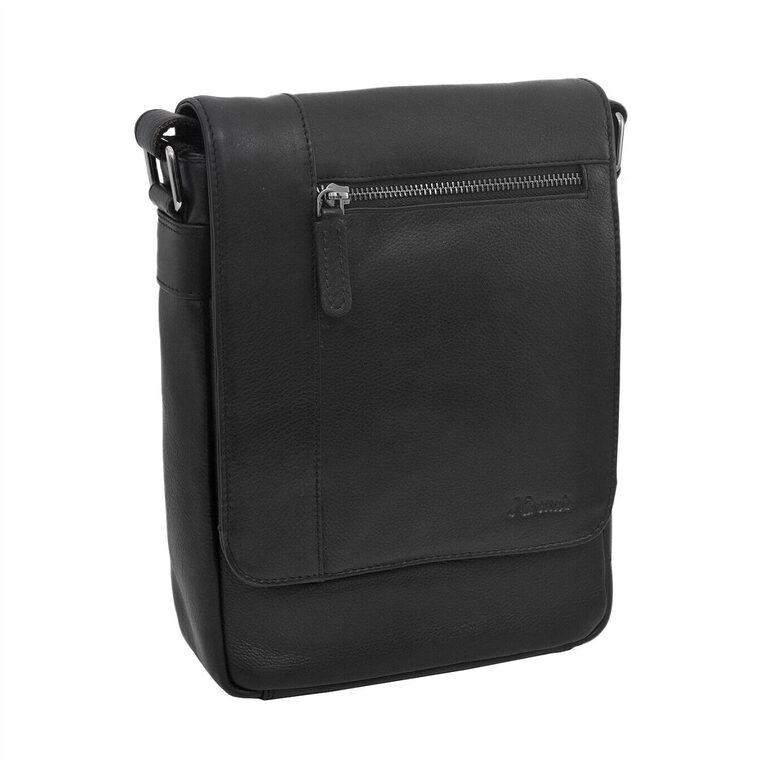 Štýlová kožená taška s poklopom na rameno / cez plece z kvalitnej hladkej kože v čiernej farbe. Praktický formát pre tablet, dokumenty A5 a základné osobné veci v štýle športovej elegancie alebo pre športový štýl.