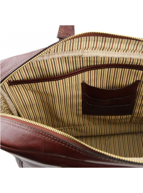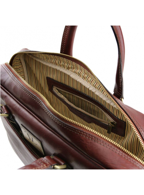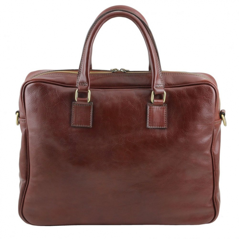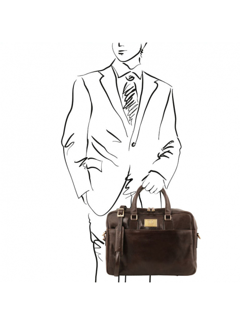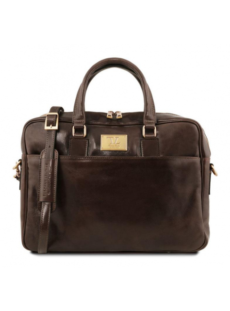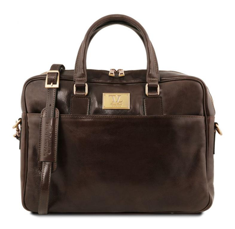 Luxusná kožená taška URBINO od TUSCANY LEATHER v tmavohnedej farbe, určená na dokumenty a laptop 15.6". Vyrobená z kože najvyššej kvality, viac ako 100-ročná tradícia spracovania.