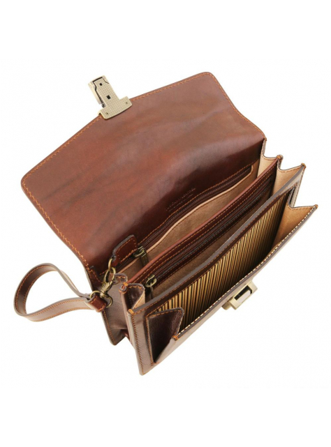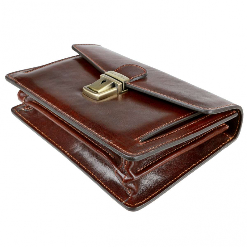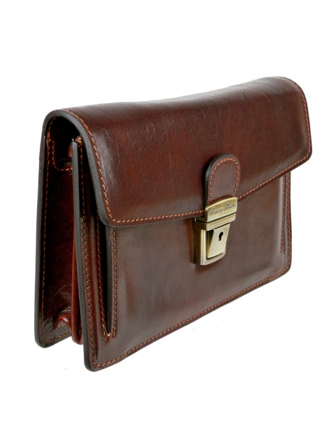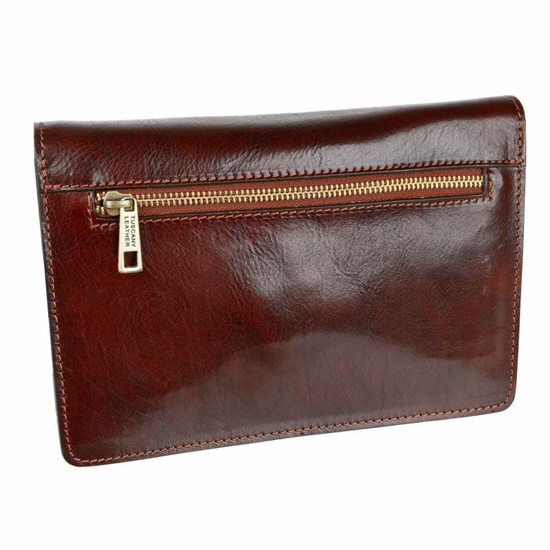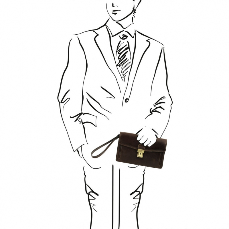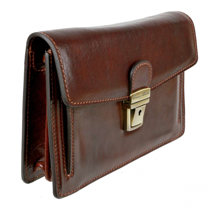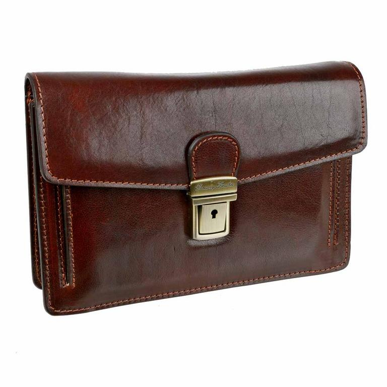 Pánska príručná etue taška TOMMY značky TUSCANY LEATHER v elegantnej hnedej farbe. Etue sa prenáša pohodlne v ruke, alebo za kožené putko na karabínke.
