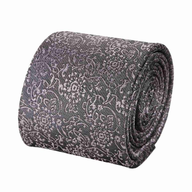 Luxusná V.I.P. kravata s levanduľovými ornamentmi antracitová