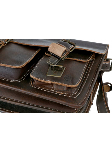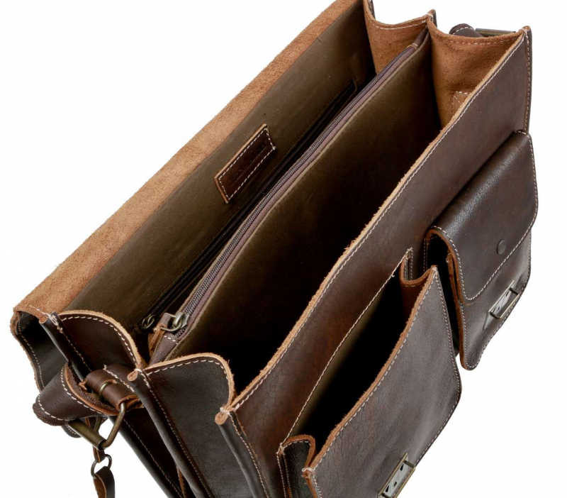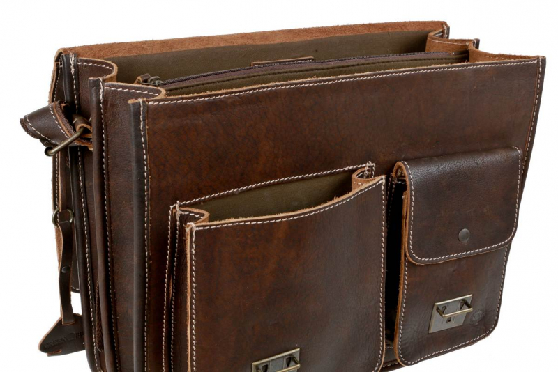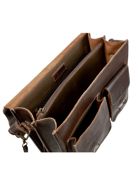 Luxusná pánska aktovka GREENBURRY z kvalitnej byvolej kože s hladkým povrchom. Masívna koža odolná voči záťaži, dvojkomorový úložný priestor.