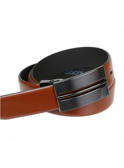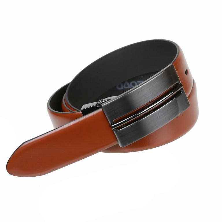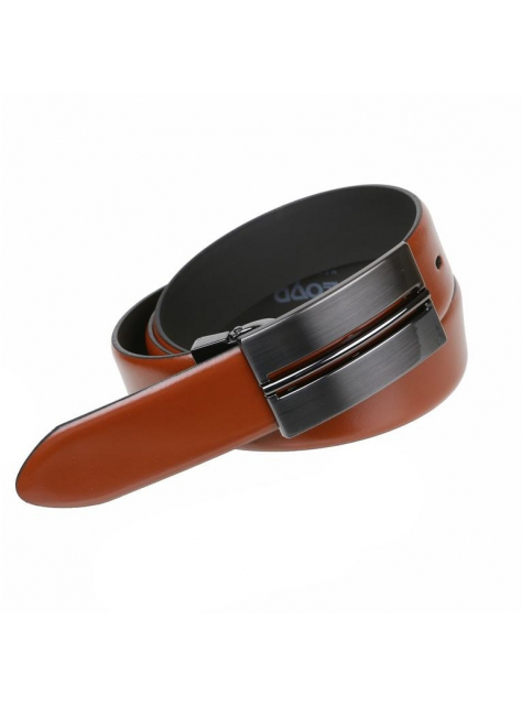 Remeň z masívnej kože v hnedej koňakovej úprave bez šitia, flexibilný.