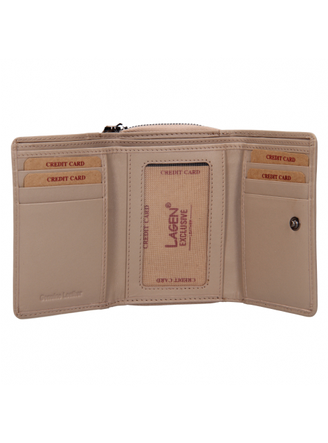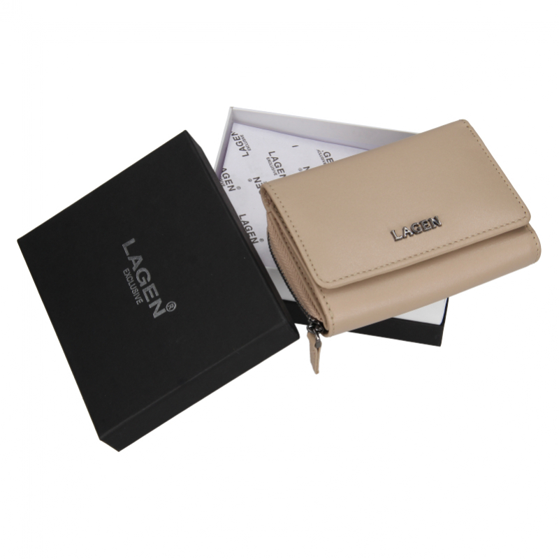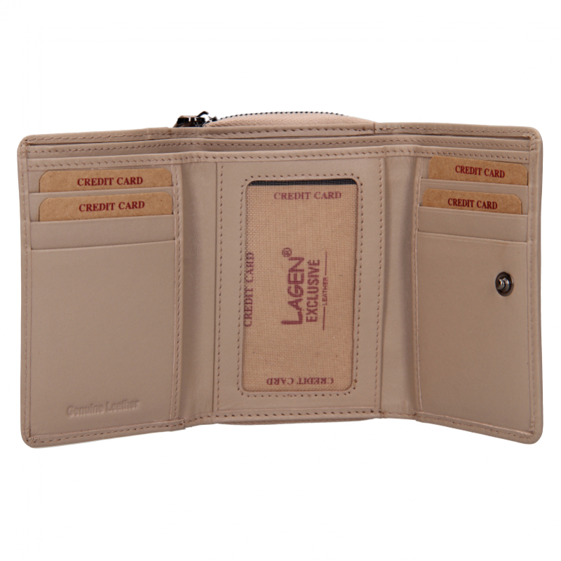 Malá dámska kožená peňaženka LAGEN v luxusnom vysoko elegantnom prevedení. Malý praktický formát do dlane, poskytuje dostatok priestoru pre mince, bankovky, karty aj doklady.