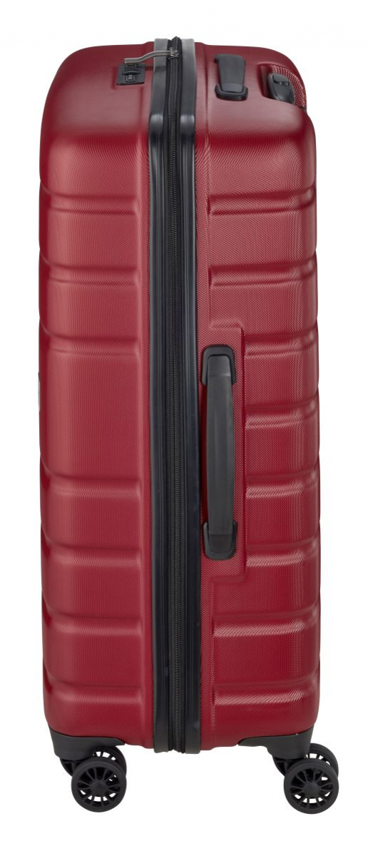 Na vrchu a boku kufra sa nachádza plastová rúčka pre lepšie prenášanie, taktiež je kufor vybavený aj výsuvným viacúrovňovým teleskopickým držiakom.