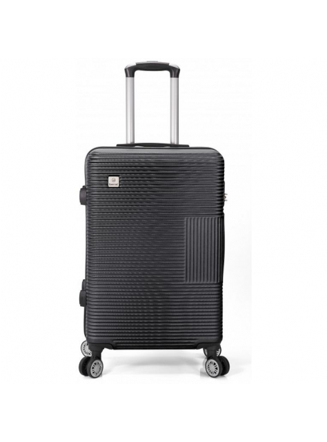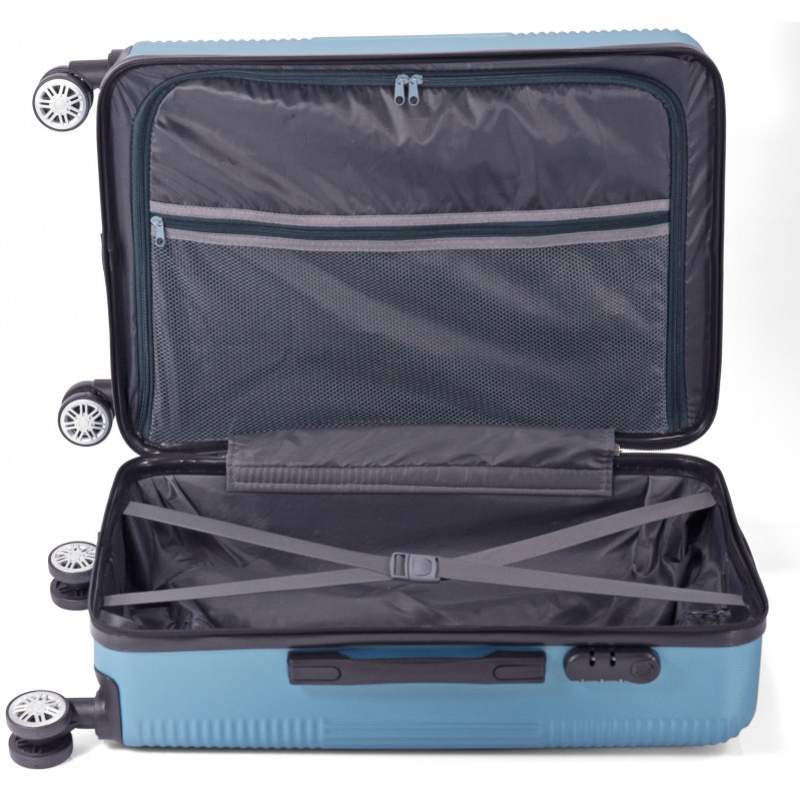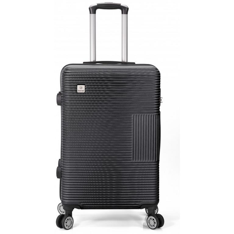 Elegantný plastový cestovný kufor BENZI palubnej veľkosti. Kufor má 4 viacsmerné kolieska z tvrdeného plastu. K prenášaniu je kufor vybavený hornou a bočnou plastovou rúčkou a výsuvným teleskopickým držiakom