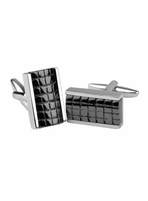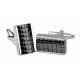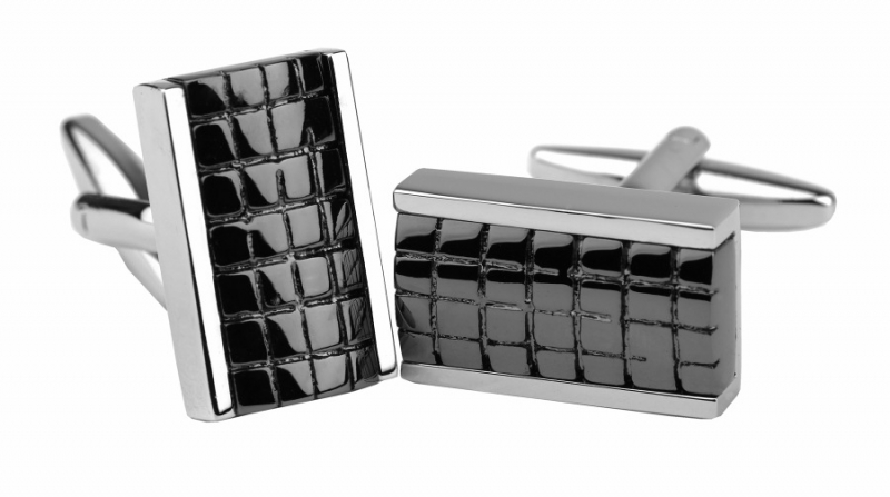 Manžetové gombíky masívnejšieho dizjanu. Úprava leštená, okraje strieborné, vnútorná mriežkovaná časť čierno-šedá.