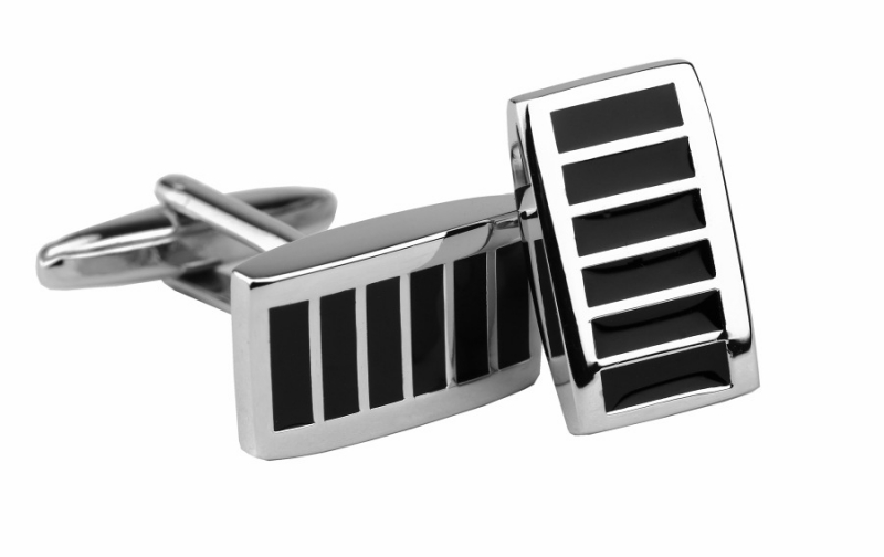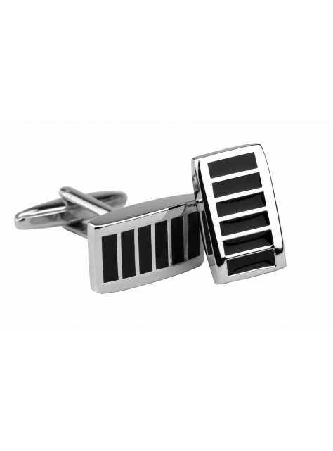 Manžetové gombíky strieborné leštené s emailovou čiernou výplňou.