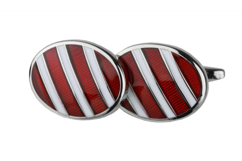 Elegantné manžetové gombíky vhodné na spoločenské príležitosti aj na bežné nosenie. Oválne s emailovou výplňou - červeno-biele.