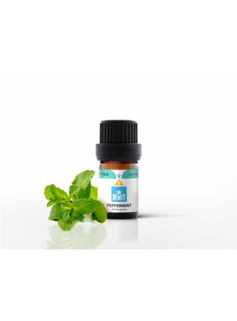 Kvalitný 100% čistý esenciálny olej značky BEWIT z MÄTY PIEPORNEJ je osviežujúca, povzbudzujúca aróma so širokým spektrom účinkov a použitia - pôsobí sviežo, čisto, antibakteriálne, dezinfekčne, neutralizuje nepríjemné pachy, zanecháva príjemnú čerstvú vôňu pepermintu.