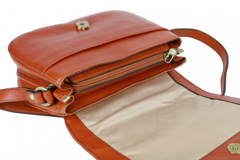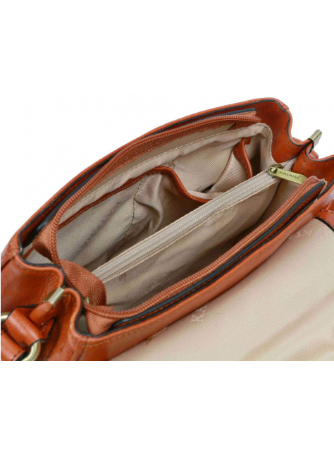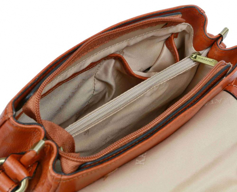 Jemná a štýlová kabelka oblých tvarov s francúzskym pôvabom z kolekcie značky KATANA. Z kvalitnej kože v luxusnej povrchovej úprave, v mierne lesklom prevedení, elegantnom medovom odtieni. Luxusný trendový model, vysokoelegantný dizajn, pevný a stabilný tvar. Dvojkomorové vnútro.
