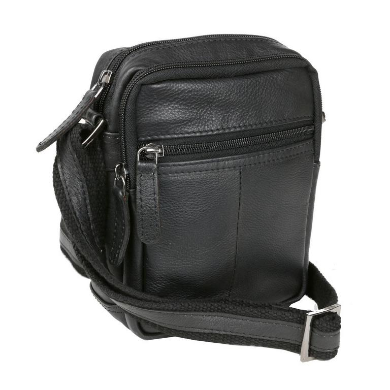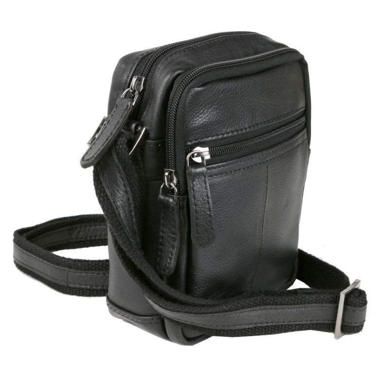 Príručná malá crossbag taška z čiernej mäkkej kože. Taška s chlopňou, uzatváranie na magnet, priečinky na zips.