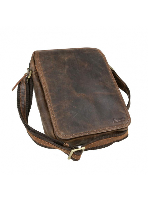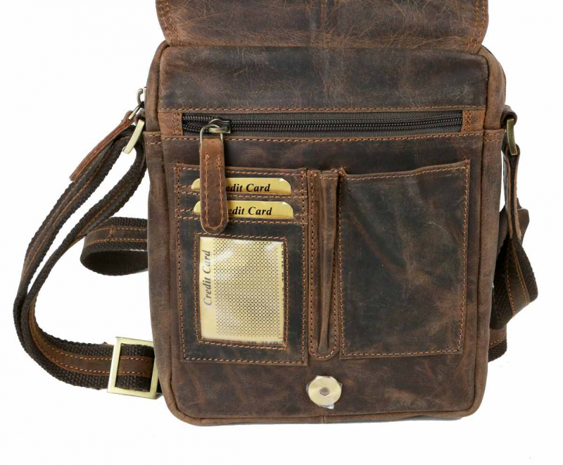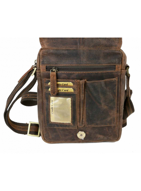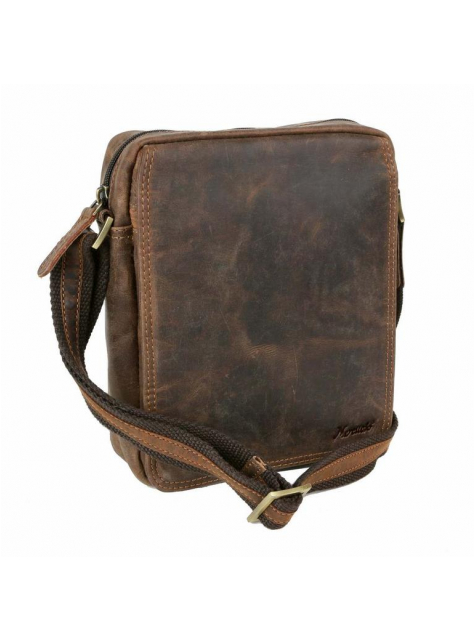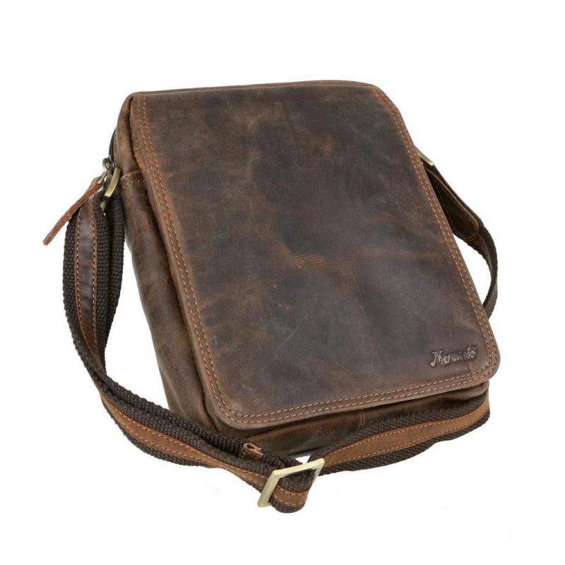 Crossbag taška MERCUCIO v rustikálnej štýlovej úprave. Príručná taška s chlopňou a dlhým nastaviteľným popruhom. Uzatváranie na magnet, priečinky na zips.