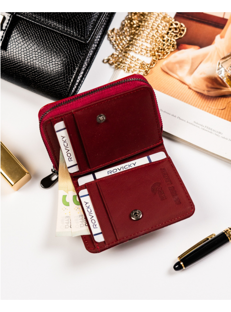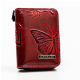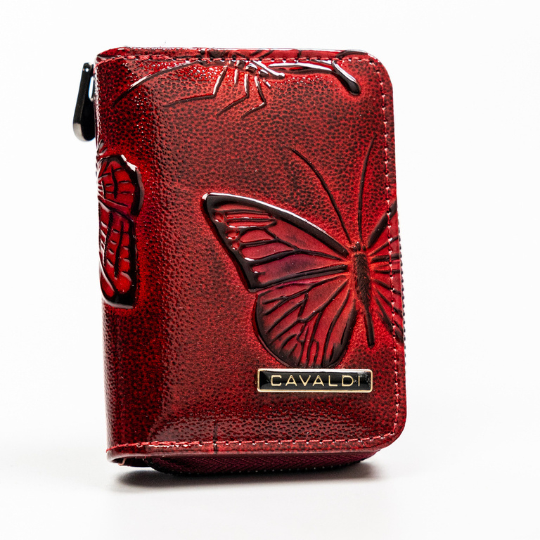 Exkluzívna dámska minipeňaženka CAVALDI veľkosti do dlane 10 x 7 cm v sýtočervenej farbe s ozdobným vzorom motýľov.