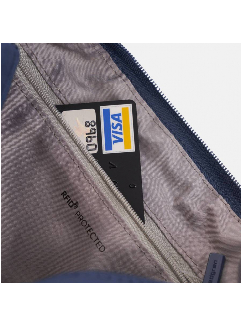 Praktická taška príručného formátu na každodenné drobnosti, doklady, so špeciálnym vnútorným vreckom s RFID ochranou proti odčítaniu údajov z kariet.