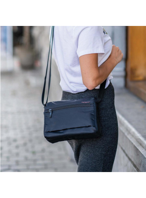 Moderná športová crossbody taška 22 x 17 x 10 cm zn. HEDGREN s polstrovaním po celom vonkajšom obvode a s nastaviteľným popruhom na rameno. Všetky priečinky s uzatváraním na zips.